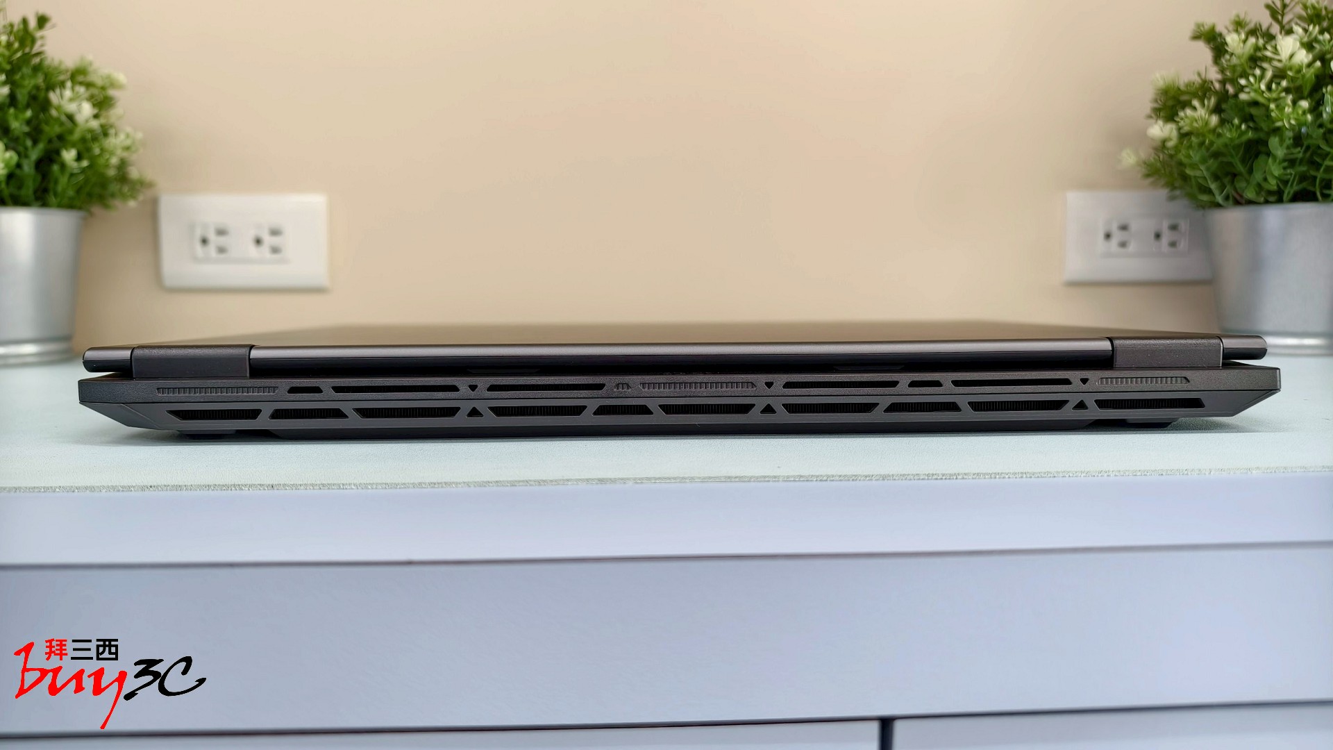 筆電本體重量2.65公斤,變壓器重量0.751公斤,雖然不算輕的電競筆電,但考慮到它18吋的螢幕與強悍的效能,這個重量已經非常有誠意。最厚處27.1mm,最薄處21.7mm,放進背包裡也不會太占空間。