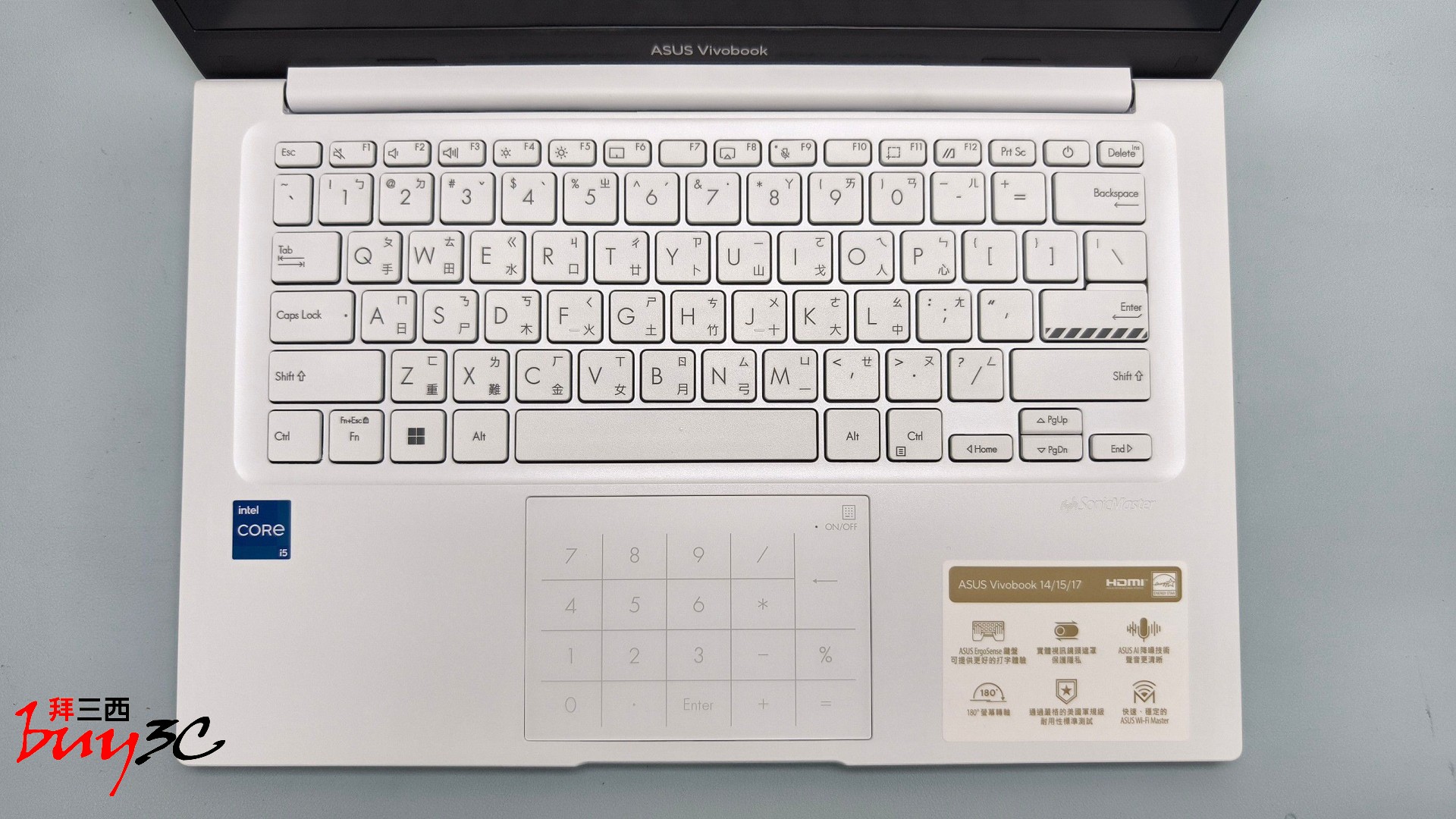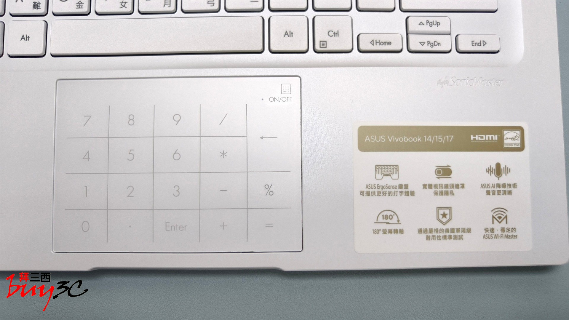 最值得一提的是觸控板整合了 NumberPad 2.0 虛擬數字鍵,這是一項極具巧思的功能,只需輕觸右上角圖示,觸控板即刻化身數字鍵盤。優雅地解決了 14 吋筆電先天缺乏獨立數字區的痛點,讓輸入效率倍增。