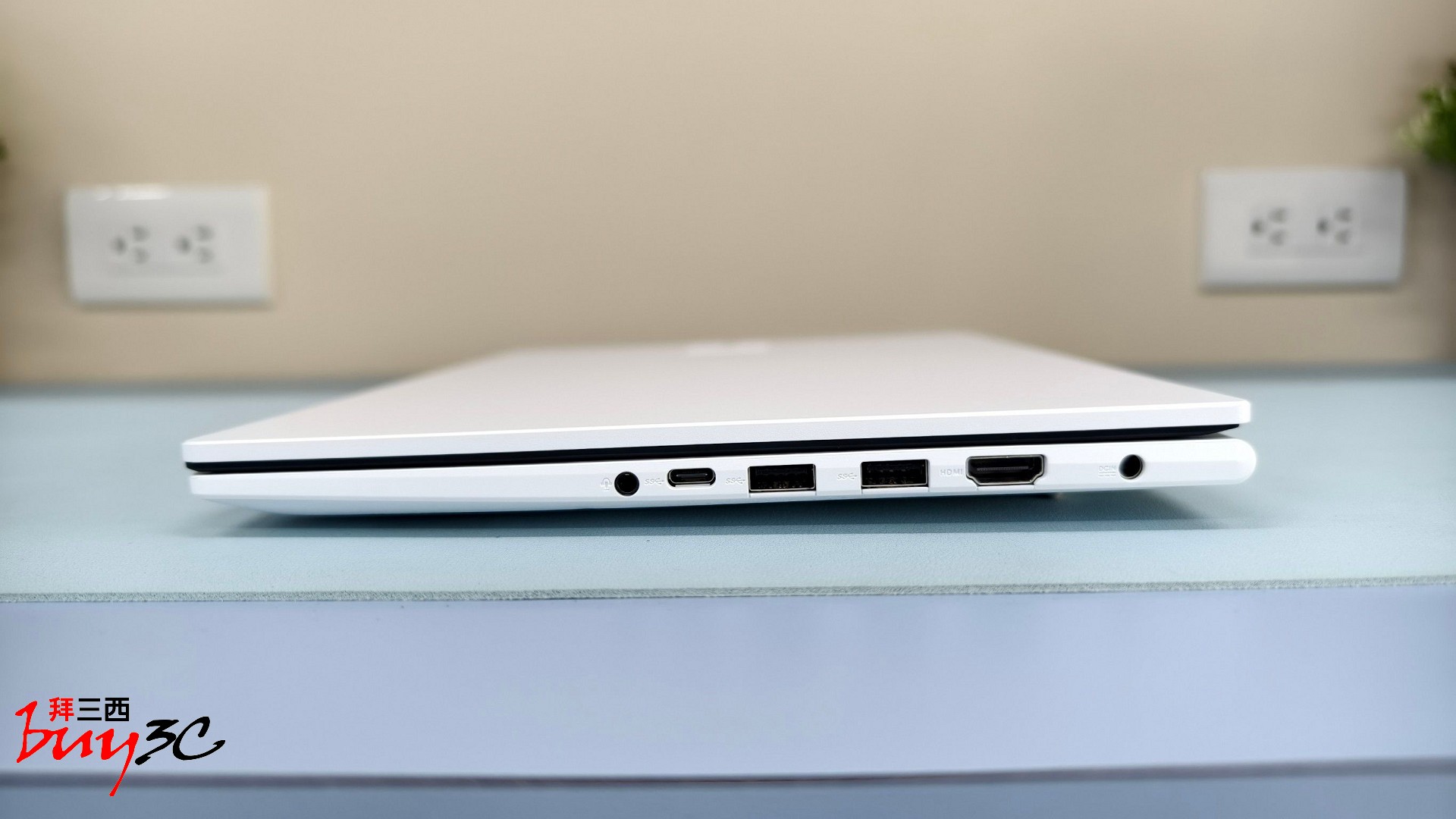 在擴充介面方面,X1404VA 展現了極佳的實用主義。左側配置基本 USB 埠,右側則集結了 DC 電源孔、HDMI、USB 3.2 Type-A 以及支援高速傳輸的 USB-C 埠。這意味著使用者完全無需依賴額外的轉接集線器(Hub),展現了隨插即用的高度便利性。